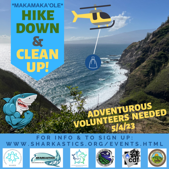 SHARKastics has been spearheading cleanups at Ka'ehu on the 4th Sunday of every month since July, 2012. This bay and coastline are important for many species! More and more debris is always washing ashore, so we need your help. So far, we've removed over 40 tons of marine debris. It's heaps of fun!